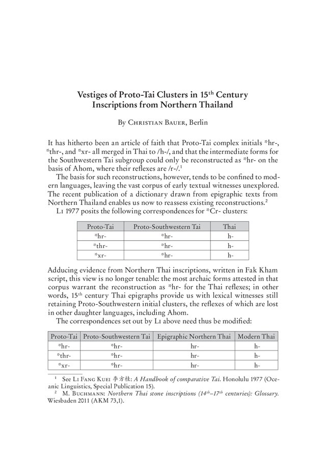 1 See Li Fang Kuei 李方桂: A Handbook of comparative Tai. Honolulu 1977 (Oceanic Linguistics, Special Publication 15).