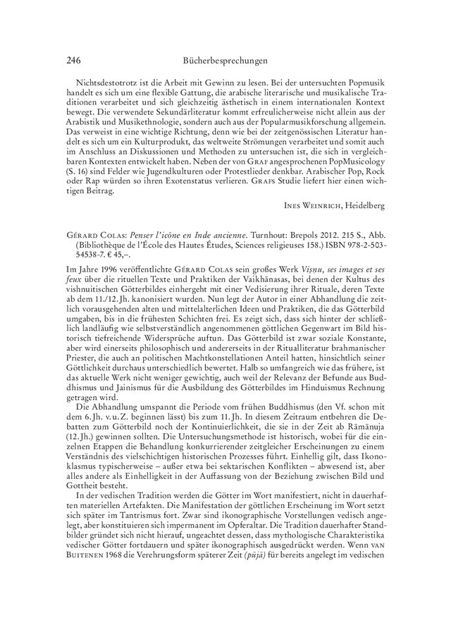 Gérard Colas: Penser l'icône en Inde ancienne. Turnhout: Brepols 2012. 215 S., Abb. (Bibliothèque de l'École des Hautes Études, Sciences religieuses 158.) ISBN 978-2-503-54538-7. € 45,–.