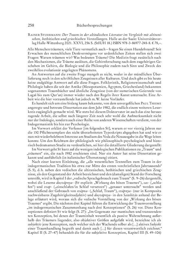 Rainer Stuhrmann: Der Traum in der altindischen Literatur im Vergleich mit altiranischen, hethitischen und griechischen Vorstellungen. Halle an der Saale: Universitätsverlag Halle-Wittenberg 2021. XXVI, 256 S. (StIUH 18.) ISBN 978-3-86977-248-8. € 78,–.